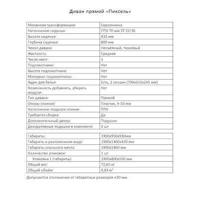 Диван Пиксель (Аквилон) продается в интернет-магазине mebel-online-nefteyugansk.ru по цене 30 299 руб. Есть доставка по Нефтеюганску и Ханты-Мансийскому автономному округу. Возможность подъема на этаж и сборки уточняйте у менеджера по телефону 8(800)505-27-11.