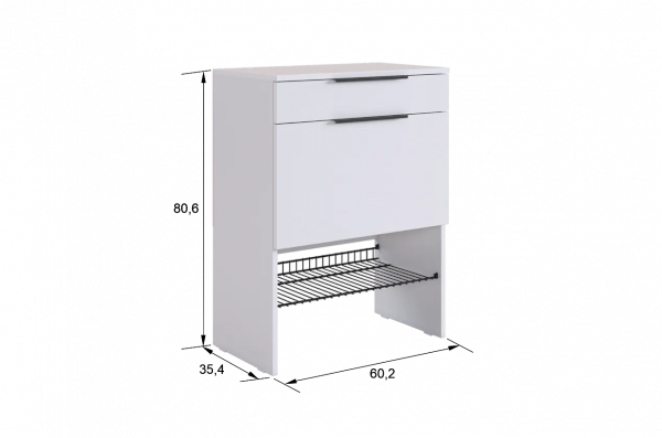 Изготовленная из прочного ЛДСП толщиной 16 мм, обувница обеспечивает надежность и долговечность. Выкатной ящик на шариковых направляющих позволяет легко и плавно открывать и закрывать его, предоставляя дополнительное место для хранения мелочей.